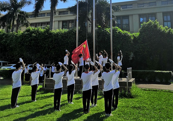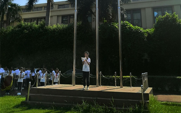 2019年9月23日上午,中山市新長(zhǎng)江學(xué)校舉行“迎國(guó)慶、 升國(guó)旗 、唱國(guó)歌”的升旗儀式和“彩旗飄揚(yáng)迎國(guó)慶”為主題的國(guó)旗下講話。同學(xué)們用鏗鏘雄健的步伐、昂揚(yáng)向上的精神面貌、氣勢(shì)恢宏的合唱國(guó)歌為祖國(guó)母親成立70周年獻(xiàn)禮。