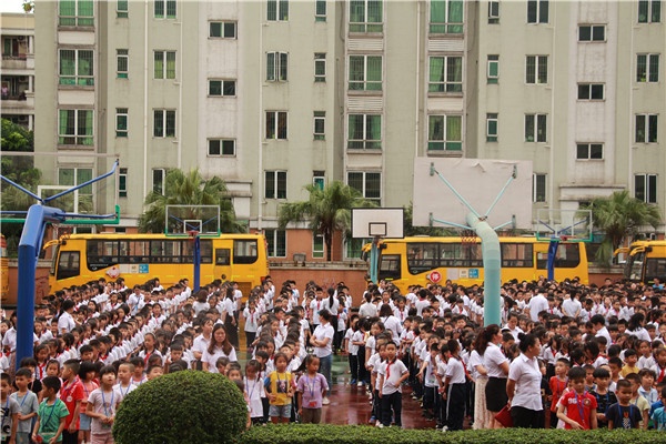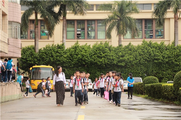 下午4時,帶著對第二天的期待,同學們排著整齊的隊伍走出校門,宣告新學期第一天圓滿結束。