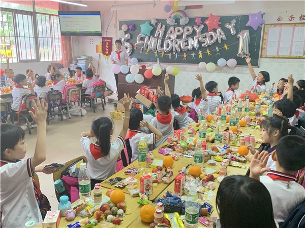 各班教室沸騰起來了,教室內外,五彩繽紛,喜氣洋洋,盛況空前。孩子們在班主任和家長們的精心組織安排下,開展了豐富多彩的游園活動:擊鼓傳花、搶凳子、吹氣球、搶氣球、踩氣球、吹乒乓球、夾乒乓球,甚至爸爸媽媽們也加入了游玩的行列,親子游戲層出不窮,大家玩得不亦樂乎......今天的教室成了孩子們的快樂天地,今天的校園成了孩子們的盡情展示自我的精彩舞臺,大家載歌載舞,歡聲笑語響徹整個校園。