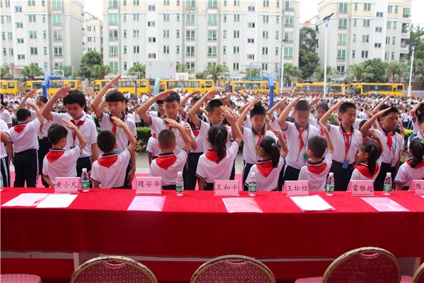 在教務處王松桂副主任宣讀了表彰決定之后,學校領導為本年度的“先進中隊”、“優秀中隊輔導員”、“優秀少先隊員”進行了頒獎。活動中,新隊員舉行了入隊儀式。隨后,新老隊員在大隊輔導員雷雅超老師的帶領下進行了宣誓,該校領導向學生代表發放了“六一”禮物。師生的點滴成績,變成成長的音符,鑄就新長江學校新的輝煌。