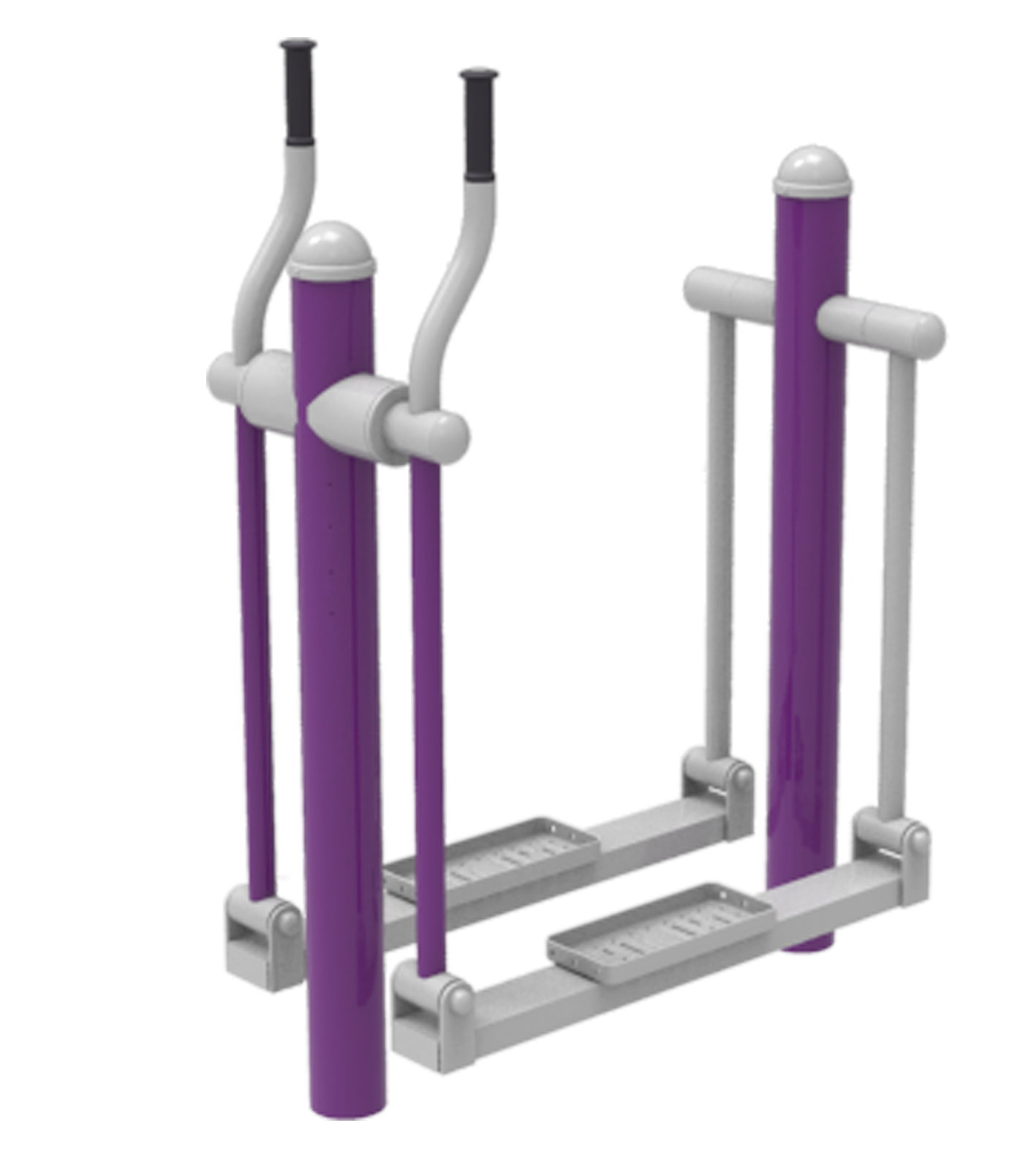 平步機一套,使用說明:雙手握緊手把,雙腳分別置于踏板上做自然交替前后擺動呈漫步動作,鍛煉下肢的靈活性。