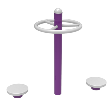太極揉推器一套,使用說明:功能:鍛煉上肢肌肉。使用方法:兩人分別站在轉輪兩側,向對方相反的用力方向轉動轉輪,比試兩人的臂力。