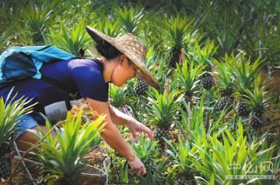 12月25日下午,記者來到丫髻山腳下,放眼望去,從山腳到山腰一片翠綠,地里的菠蘿樹長(zhǎng)勢(shì)良好,在獨(dú)特的地形下形成菠蘿梯田,錯(cuò)落有致、層層疊疊。近幾年,神溪村依靠菠蘿種植推動(dòng)鄉(xiāng)村休閑旅游,徹底把丫髻山這個(gè)“山窩窩”變成了“金鳳凰”。每到菠蘿飄香時(shí)節(jié),絡(luò)繹不絕的游客前來采摘菠蘿,村民瞄準(zhǔn)商機(jī),建起了集觀光采摘、吃飯于一體的休閑農(nóng)莊。2018年,神溪村僅菠蘿產(chǎn)值就突破2400萬元,種植菠蘿成為村民奔向小康生活的“敲門磚”。