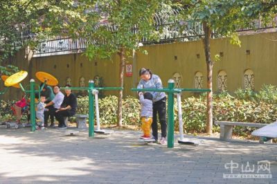 15日上午,村民在三鄉(xiāng)鎮(zhèn)橋頭村的健身場玩耍。本報(bào)記者 王云 攝