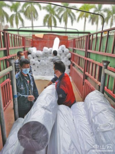 三角鎮企業國泰染整正在給國際服裝大品牌發貨供應高端布料。