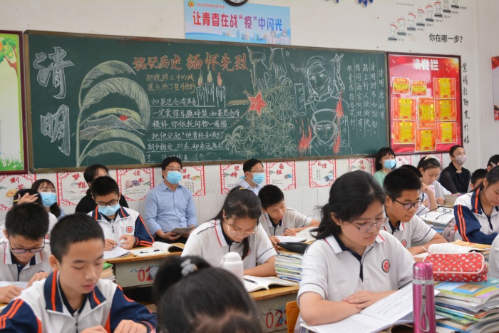 4月13日上午,中山市實驗中學總校長蔣曉敏、副校長何麗嫻、教務處副主任劉秋庚蒞臨北區中學,參與聽、評初二級羅怡恬老師的一節語文復習課,教育集團辦公室主任彭志菲、北區中學校長黃金柱全程陪同參加。