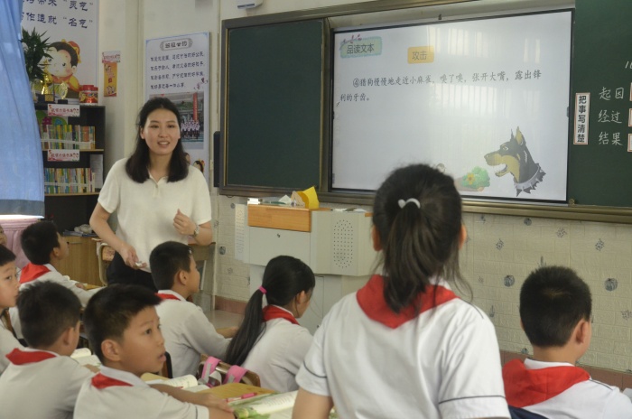 語文課上樂趣無窮!二年級的教室里書聲瑯瑯,同學們在“演一演”“想一想”等多種形式的朗讀中體會感悟寓言故事《井底之蛙》所蘊含的道理。四年級的《麻雀》是一節習作指導課,老師們以課文為范例,指導學生把一件事寫清楚,在角色扮演中體會文章詞句形象生動,感受動物偉大的母愛。在六年級《盼》的一文學習中,老師們引導學生層層剖析小女孩心理活動的描寫,讓學生代入角色,學習如何把人物的心情和想法寫具體。