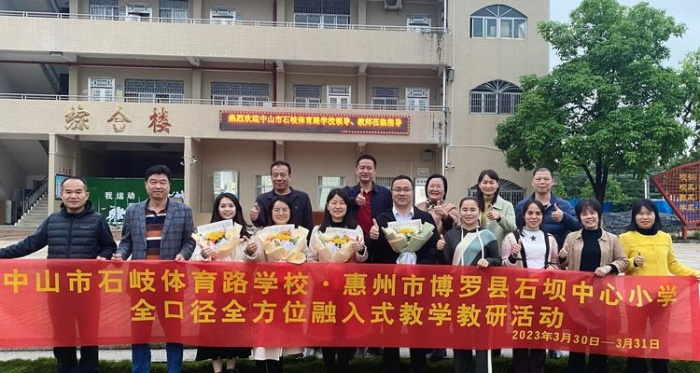 為切實貫徹好《廣東省教育廳關于進一步推進落實基礎全口徑全方位融入式幫扶工作》文件精神,發揮優秀教師的示范引領、帶動輻射作用,切實加強與博羅縣石壩中心小學教育教學全方位交流,2023年3月30日—31日,中山市石岐體育路學校黨支部書記、校長孫華親自帶隊,由學校行政與骨干教師組成的交流團隊德育處主任陳立、教導處副主任劉瑜、唐海鳳和英語備課組長陳少丹等得力干將一同到博羅縣石壩中心小學開展主題為“結對幫扶促均衡,強化教研謀發展”全口徑全方位融入式教學教研活動,博羅縣教師發展中心掛職副主任郭洪亮應邀出席了活動。