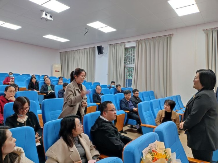 在一片熱烈的掌聲中,語數英分別開展了教學討論會。在會議中,老師們積極發表自己的意見,互相交流、探討,劉瑜老師,陳少丹老師、唐海鳳老師也分別傳遞了自己的教學理念、教學方法,給予了石壩中心小學老師們自己教學的經驗。為了更好地在教育教學的策略上幫助石壩中心小學,陳立主任根據石壩中心小學的實際情況,為老師們帶來《如何落實低年級教育教學的策略》主題講座。陳立主任向老師們介紹了體育路學校的教育宗旨、教學成果,同時,他根據學校“三段一體目標導向”,認為小學低段應注重培養學生的興趣+習慣+思維。他講道,低年級是培養孩子學習興趣的關鍵期,也是培養良好學習習慣的關鍵期。對于低年級孩子學習思維的培養,要引導自主探究,拓展學生思維的廣度;巧妙設置問題,發掘學生思維的深度;尊重學生,培養學生思維的獨創性,讓教育教學有實效。在陳立主任的分享后,老師們都頗有收獲。針對低年級教育教學的策略,陳立主任和石壩中心小學的老師們繼續深入討論,仔細研討,共同為培育孩子學習興趣、習慣、思維出謀劃策。