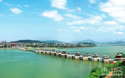 位于古城東面韓江的廣濟橋,始建于南宋乾道七年(1171年),明朝嘉靖九年(1530年)形成“十八梭船廿四洲”的格局。是世界上首例“啟閉式石梁橋”,以其獨特構筑而聞名海內外,被譽為中國“四大古橋”之一。
