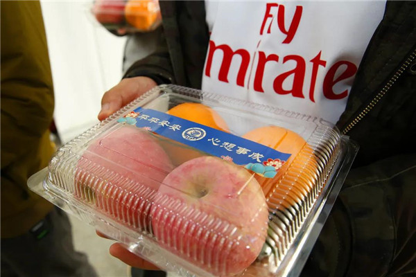 一套果盒由2個蘋果和2個橙子組成,蘋果甘甜可口,寓意平平安安;橙子美味多汁,寓意心想事成。簡單的組合,不僅是學校送給同學們的新年禮物,更代表學校對同學們滿滿的祝福和關愛。