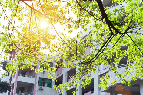 學校圖片 | 綠樹成蔭的校道 綠樹、校舍相映成輝 新校園鳥瞰效果圖 新校園教學樓效果圖 | ||