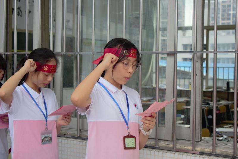 繼而,初三(10)班余芷琪、初三(6)班肖田田同學帶領全體同學進行宣誓。