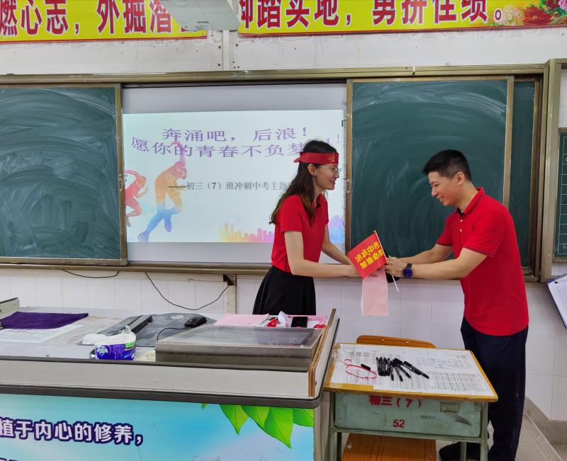 學校行政領導也隨之走進初三各班級,送上沖刺中考紀念品,為學生鼓勁加油,這更拉近了師生的距離。