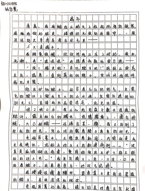 這次端午節主題活動內容有:1、“粽子情,我們傳”。要求初一級學生在2020年6月25-27(端午假期)在家里包一次粽子、制作香囊、掛艾草。2、“傳經典,誦祖國”。要求初二級學生以端午節為主題,朗誦一首詩歌(視頻拍攝)、寫一篇抒情文章、書寫一幅對聯。初一、初二級各班都積極開展了“端午主題”活動,讓學生感悟傳統文化的魅力,接受中華悠久文明的洗禮和傳統美德的熏陶,增強民族自豪感,用中華傳統節日引領同學們詩意成長。