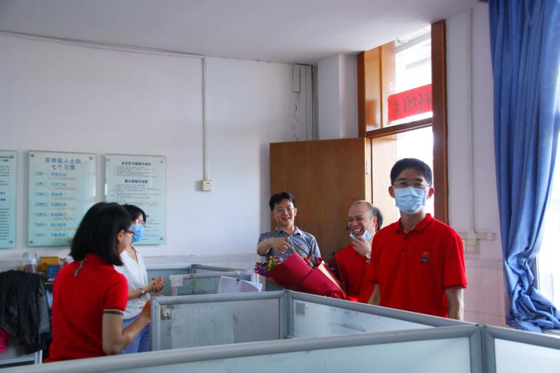 高三學子正進行模擬考試,為了讓學子們不受打擾,張局長輕聲向熊校長詢問他們的身心健康和備考狀態。 隨后,張局長走入高三教師辦公室,慰問正在忙碌的一線教師,感謝他們的辛勤付出。張局長高度贊揚了羅中教師吃苦耐勞的拼搏精神,同時勉勵大家再接再厲,再創佳績。 余逸主任向高三年級級長蘇靜瓊老師獻上了鮮花,并祝愿羅中學子在2020年高考中取得豐收碩果。 在高考沖刺關鍵時期,區領導的慰問進一步鼓舞了高三師生的士氣。高三師生將以更高昂的斗志、更飽滿的狀態、更務實的態度投入到備考沖刺中。七月,我們期待再創高考新的輝煌!