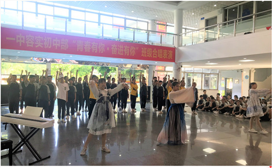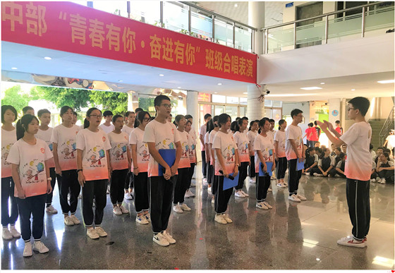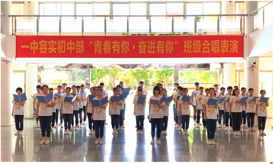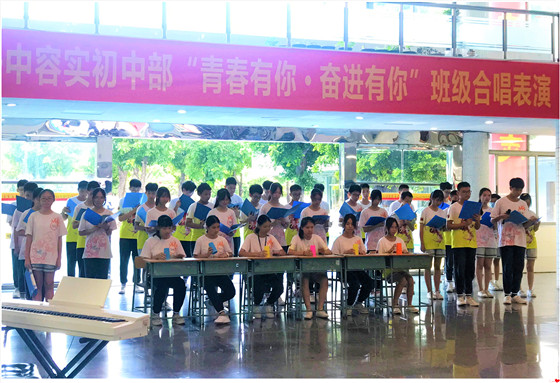 青春象征著勃發的生機與活力、無窮的激情與夢想,以及不懈的拼搏與進取。6月21日,順德一中教育集團容桂實驗學校七、八年級全體師生舉辦了一場以“青春有你?奮進有你”為主題的班級合唱表演。