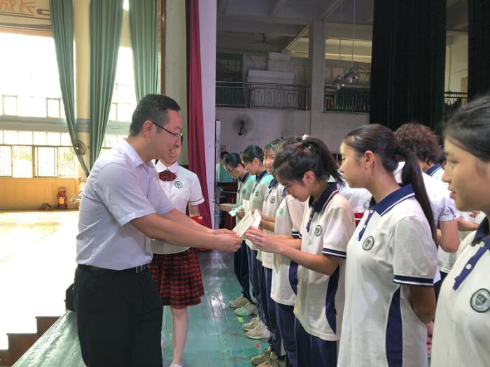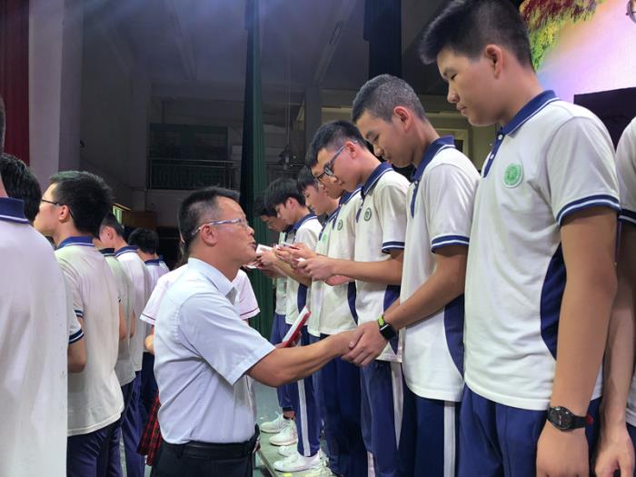 接著, 冉思柱老師代表全體九年級老師在離別之際送上了真誠的祝福。他飽含深情地回憶起跟同學們在一起的美好時光,并希望大家:讓育賢精神心中永存,用一顆真誠的心向世界播撒溫暖和陽光,堅強勇敢,坦然無愧地看待自己,珍愛平凡而充實的人生!不管走到哪里,都要與好書為友,與摯友相伴,無愧于自己、無愧于生活、無愧于這個激情四射的時代!