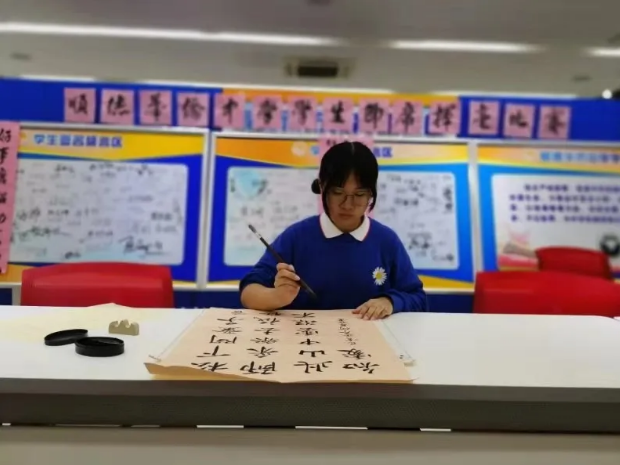 書(shū)畫(huà)社是一個(gè)充滿著傳統(tǒng)文化氣息的社團(tuán)。我們有著獨(dú)立寬敞的書(shū)法室,除了在平時(shí)練習(xí)書(shū)法,我們還參加各樣的比賽以及校內(nèi)的校外活動(dòng),如與善耆家園的老人們一起練書(shū)法,春節(jié)時(shí)送揮春活動(dòng),還有各種各樣的擺攤活動(dòng)。大家在這里可以陶冶情操,提高書(shū)寫(xiě)水平,體會(huì)高中生活的有趣之處。