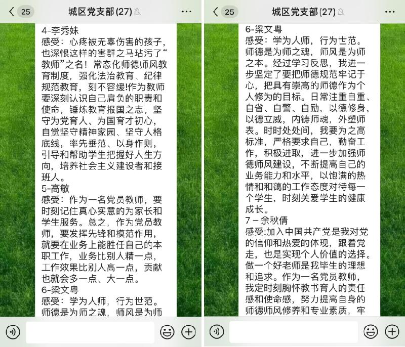 師者,以德為先”。高尚的師德師風是教師從事教育工作的靈魂。為了進一步加強教師隊伍建設,不斷提高教師職業道德素質和師德修養,保障全體教師在良好師德師風塑造和學習中的不松懈和持續性7月27-30日,在暑假期間,龍江城區中心小學組織全體教師在線上重點學習了“教育部公開曝光8起違反教師職業行為十項準則典型問題”一文,并進行了自我反思和學習心得的分享交流。