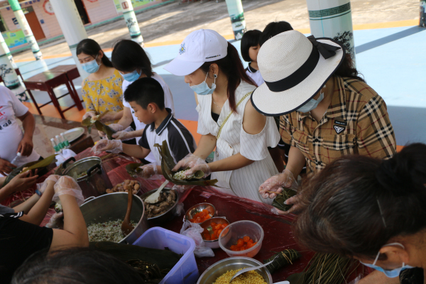 新圩小學為了傳承歷史文化,在這個傳統節日即將來臨之際,6月23日下午,在校園里開展以“濃濃粽香飄,暖暖家校情”的“我們的節日.端午節”家校共育主題活動。這個活動得到學校家委會的大力支持,在家委會總會長的帶領下,發動家長朋友們積極參與,主動去購買那些新鮮的食材、裹粽子的材料和用具,一大堆食物擺得滿滿的,好像在等待著脫胎換骨的神奇變化!