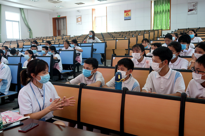 6月23日,江義中學在曉理廳為西藏班同學們組織開展了《真心英雄》主題講座,邀請到新冠疫情期間馳援武漢的抗疫英雄劉穎醫師作為主講嘉賓。劉穎醫師來至南方醫科大學順德醫院,在講座中她向西藏班的孩子們分享了自己2月9日到3月10日奮戰在武漢抗疫一線的真實故事。