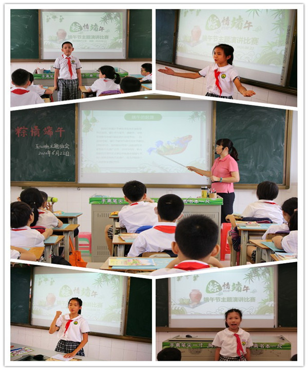 6月29日班會課各班舉行了一次有關端午節的主題班會。班會上,老師和同學們通過講端午節的習俗和歷史故事、PPT課件展示等多種形式,讓學生了解端午節的來歷、習俗,體會我國傳統節日獨特魅力,激發孩子的愛國情感。各班還開展了有關端午的演講比賽,既陶冶了學生的情操,弘揚了中華民族優秀傳統文化,又培養了學生的愛國主義情懷。