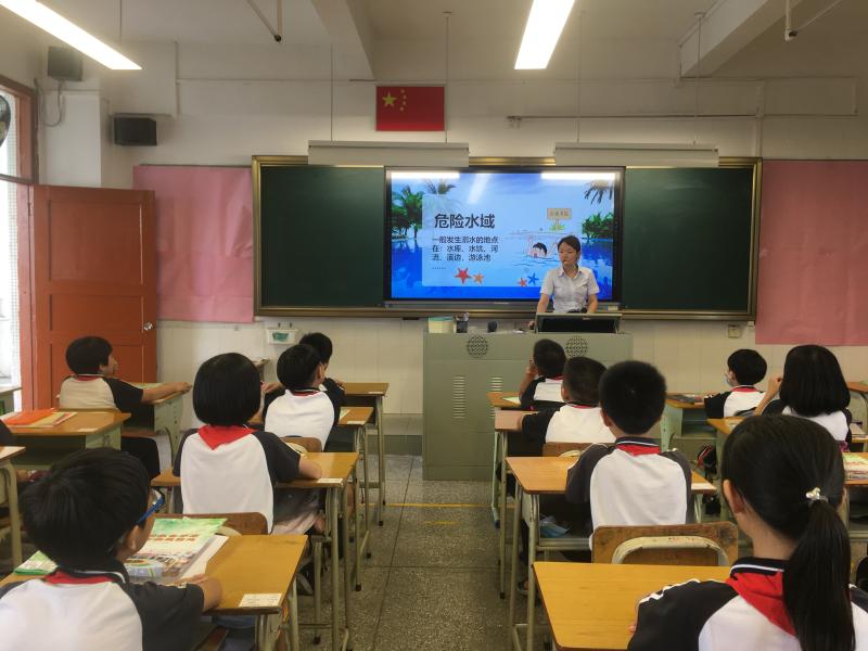 接著,交通副校長劉炎校長與法制、禁毒副校長曹少強校長通過廣播給孩子們上了一節生動的法制交通安全課講話,采取了社會當前的具體案例進行了分析。在防溺水安全主題班會中,用慘痛的事故案例教育學生安全無小事,時刻牢記安全,讓安全的警鐘長鳴,在安全的懷抱中成長。隨后學校大隊委也宣讀倡議書,提醒同學們假期注意安全,還針對假期安全對全體學生做出了具體的要求。孩子們認真聆聽,紛紛表示要遵紀守法,過一個平安、快樂的假期。