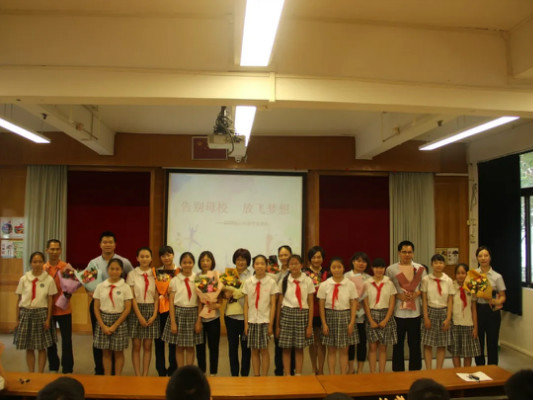 畢業典禮的高潮在謝師獻花中到來,兩個班級的學生代表為一群知識廣博、耐心細致的科任教師獻上獻花,深情擁抱中,不少老師和學生都已眼眶濕紅。