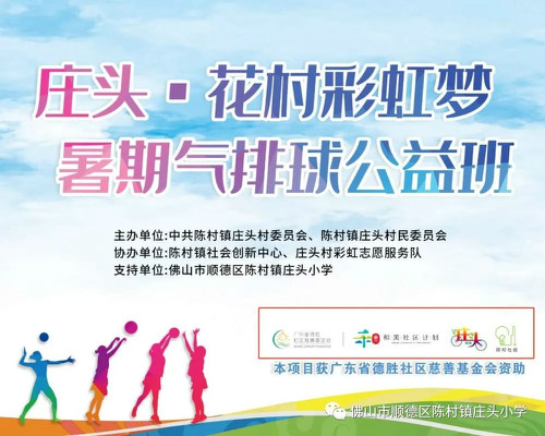 為了豐富學生的暑假生活,進一步推廣氣排球運動項目在學校的發展,陳村鎮莊頭小學聯合莊頭村委會、陳村社創中心、莊頭彩虹志愿者服務隊舉辦了“莊頭?花村彩虹夢――暑期氣排球公益班”,培訓對象主要是面向莊小學子以及莊頭村的孩童。活動的舉辦得到了學校家長以及莊頭村民的大力支持,紛紛踴躍報名,公益班的招生通知發布后,很快就招滿了名額。