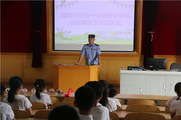 接著,陳惠南紀念學校教育集團南涌小學法制、禁毒校長潘警長結合生活中的真實事例,告誡同學們在生活中需要注意的事項、有效的自我保護措施等,為孩子們新學期的生活學習保駕護航。