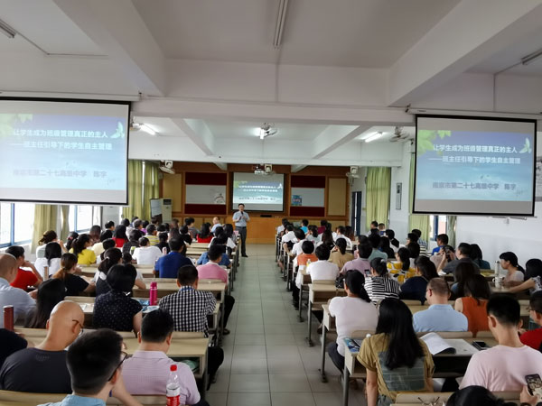 暑去秋來,學期伊始;使命催征,時不我待。為進一步貫徹2020年陳村鎮教育高質量發展座談會的精神,同時為了培養教師的德育素養,獲取多元化的教育途徑,了解德育新動態,全面提升教師的育德水平和創新能力,打造一流的師資隊伍,2020年8月31日陳村鎮初級中學邀請南京市第二十七高級中學陳宇老師為全校教師做了題為“讓學生成為班級管理真正的主人――班主任引導下的學生自主管理”的培訓講座。