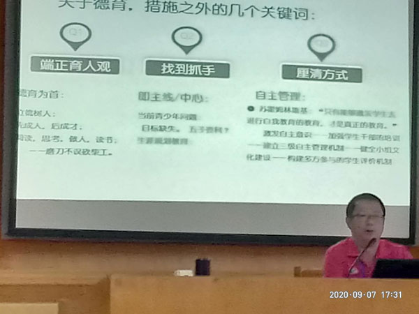 眾所周知,教學質量是一間學校的生命線,如何提高教學質量是我們每一位教師時刻都在研究的;教育的本質是促進生命的成長,作為教師,不僅僅是向學生傳授知識以及學習知識的方法,還需不斷自我提升、進步和成長。為進一步提升教師思想和業務素質,扎實開展課堂改革與創新,使教師的理論素養和實踐能力再上一層樓,謝文忠校長于2020年9月7日下午在全體教師政治業務學習會議上作了《關于教學質量的思考》的專題講座。