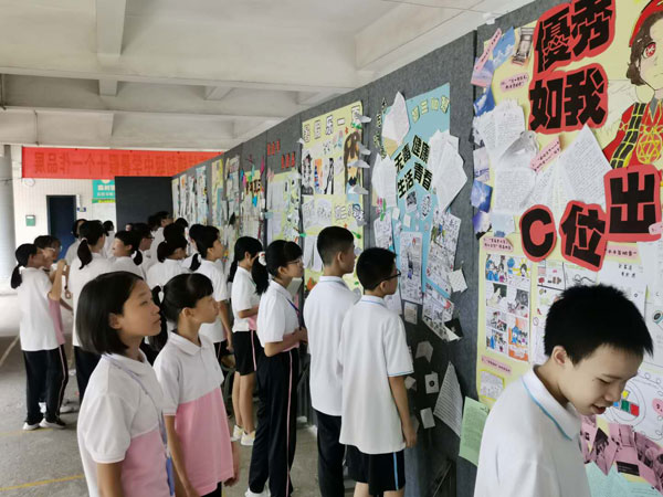 本次暑假 “十個一”作品展示活動項目有:1、“書信立志 不負韶華”。2、“小小發明家”。3、“愛祖國,誦經典”――中華傳統文化經典誦讀。4、“疫情當下――我可以做的是     ”征文活動。5、“勞動一夏”。6、“走出校園,體驗社會”實踐調查。7、“禁毒無小事,常掛心上記”漫畫作品。8、“印象陳村”明信片制作。記錄陳村鎮情,感受陳村發展。9、“陳村色彩”主題攝影。10、讀一本好書,創書香校園。本次暑假“十個一”活動形式多樣,內容豐富,給同學們提供了一個鍛煉與展示的平臺,得到了同學們的積極響應。課間期間,初一、初二級的同學們有序地參觀了暑假“十個一”作品展覽。濃墨重彩的書畫作品,心靈手巧的手工佳作,精心排版的板報,讓同學們大開眼界,情不自禁地發出陣陣贊嘆。每年的暑假“十個一”作品,同學們都能夠別出心裁,充分發揮豐富的想象力和創造力,用心血凝聚成勞動的成果。
