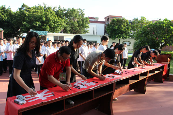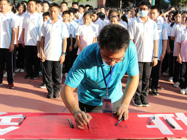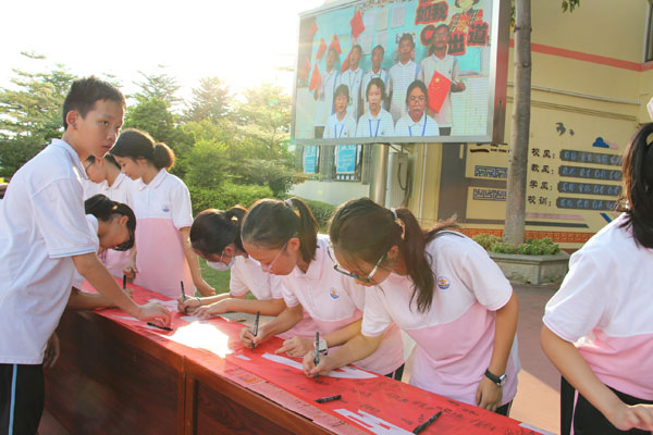 活動(dòng)首先由各班代表作紀(jì)念“九.一八”演講,同學(xué)們時(shí)而悲、時(shí)而憤的向大家講述了那段不堪回首而又刻苦銘心的歷史。全場(chǎng)一片寂靜,仿佛都被帶回了那段歷史,像是為東北三省的同胞們哭泣,像是為祖國(guó)母親命運(yùn)祈禱。直到二1班同學(xué)的“聽(tīng)那遠(yuǎn)處傳了號(hào)角聲,我們的兄弟姐妹正在用激昂的熱血,在悲涼的土地上發(fā)出一聲吶喊,勝利的曙光即將到來(lái)”,才把大家?guī)У浆F(xiàn)實(shí)中來(lái)。二12班同學(xué)為全體的師生說(shuō)出了心聲“好好學(xué)習(xí),報(bào)效祖國(guó),把我們的國(guó)家建設(shè)的更加繁榮富強(qiáng)”!最后簽名儀式上,全體師生都在“勿忘國(guó)恥,筑夢(mèng)未來(lái)”10米長(zhǎng)的橫幅上莊嚴(yán)的簽上了自己的姓名,每一個(gè)姓名不僅僅有我們對(duì)祖國(guó)的美好祝愿,更有我們的勵(lì)志“好好學(xué)習(xí),報(bào)效祖國(guó),把我們的國(guó)家建設(shè)得更加繁榮富強(qiáng)”!