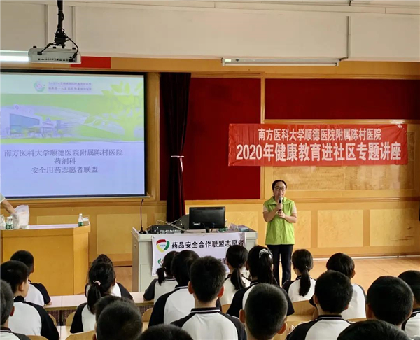 為了普及小學生的藥品安全知識,提高小學生的用藥安全意識,南方醫科大學順德醫院附屬陳村醫院藥劑科李莉藥師帶領藥劑師志愿團隊,于9月25日下午為五年級的全體師生開展了一堂生動有趣的安全用藥講座。