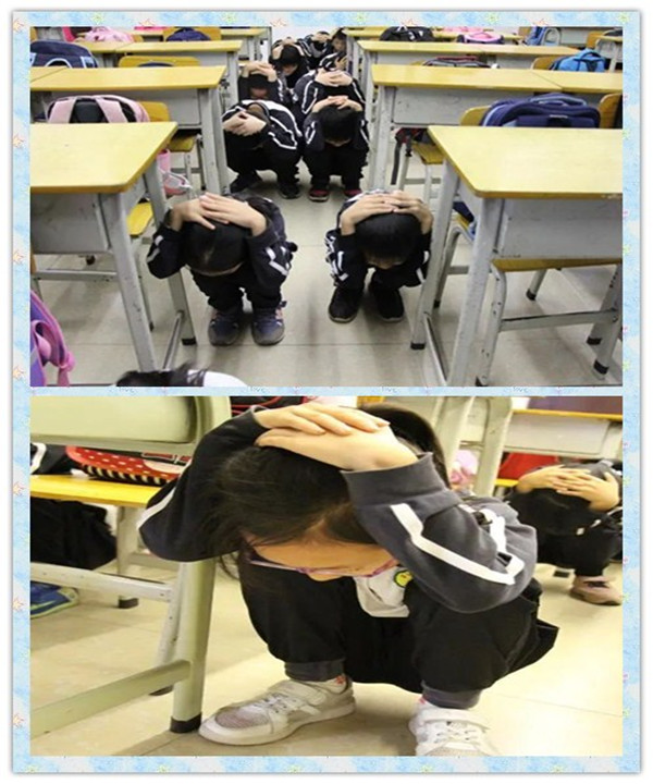 下午4時35分,隨著一陣急促的警鈴聲大作,演練正式開始。本次演練包括兩個部分:地震避險和震后疏散。當聽廣播連續長鳴60秒,廣播報“現在地震來襲,實施緊急避險”,教師立即告知學生“地震來了,同學們注意避險”,并指揮學生就近蹲在課桌臺旁邊,并打開所有的門。只見教室內師生優先選擇課桌、墻邊的活命三角區,迅速地蹲下避險,空間不足的師生則用書包或書本保護頭部,在課桌旁避險。1分鐘后,當學校廣播播報“地震應急避險結束,實施緊急疏散”。教師告知學生:“現在開始撤離教室”,跟班教師一前一后引導學生疏散,按指定逃生路線,迅速有序地疏散到學校運動場的安全地帶。隨即各班主任清點人數。整個地震避險及疏散演練過程秩序井然。