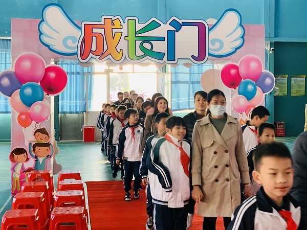 活動(dòng)開(kāi)始,家長(zhǎng)們牽著孩子的手一起穿過(guò)成長(zhǎng)門,象征著孩子走過(guò)人生第一個(gè)十年,已成功踏入人生新征程――進(jìn)入了青少年時(shí)期。