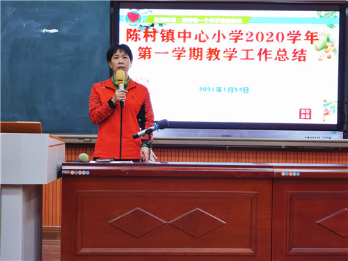 首先,分管教學的植麗娟主任對學校教學工作進行了分析、總結。植主任從教學情況反饋、期末成績分析、教學工作反思、今后工作展望四大方面進行總結。她先肯定了老師們的辛勤付出,感謝全體教師的共同努力,還利用具體的教學數據,對本學期各班的教學情況進行細致的分析,并從態度、溫度、力度、廣度、深度、密度六個方面引導老師們進行反思,從“勤落班、勤鉆研、勤學習、勤反思、勤分享”這五個方面給老師們提出了新的要求,為下學期的學校工作指明了方向。
