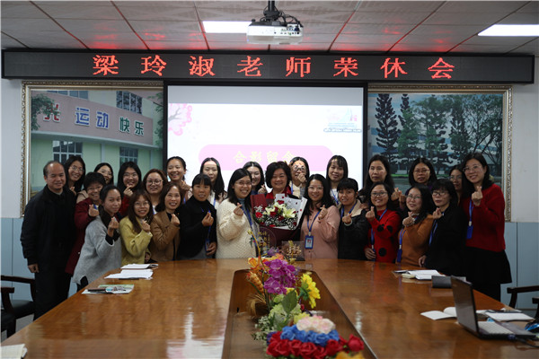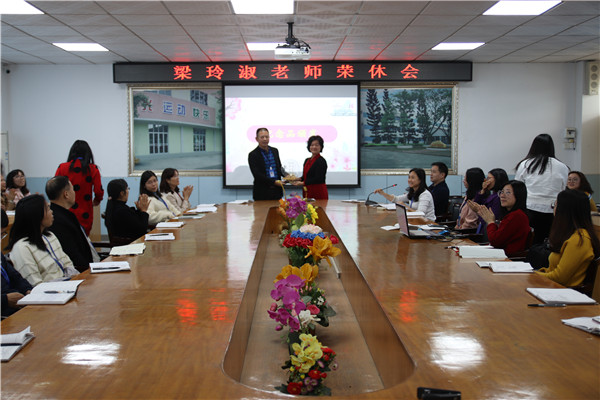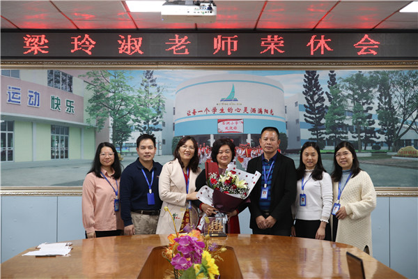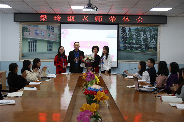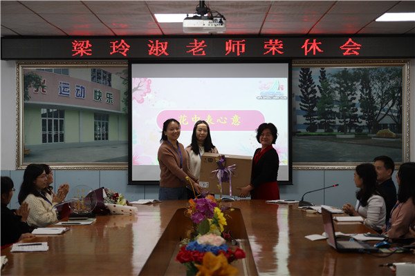 隨后,阮漢潮校長對梁老師無私奉獻的精神表示衷心的感謝,老教師是新教師奮發向上的動力,是年青教師的學習榜樣,對她的辛勤耕耘,默默付出助力學校的發展給予了高度贊揚,祝福她在榮休后生活美滿、身體健康,翻開新的人生篇章。