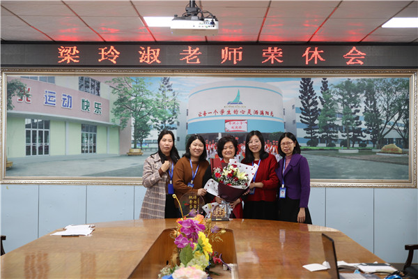 最后,阮漢潮校長代表石洲小學全體教職員工為梁老師贈送紀念品,教師代表向梁老師送上鮮花、紀念品!伴隨著熱烈的掌聲,石洲小學的全體陽光師生們衷心祝愿梁老師退休后的生活更加多姿多彩,幸福美滿!歡送會在熱烈的掌聲中圓滿結束。