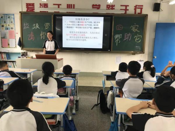 鎮執法辦的志愿者帶領大都小學四年級學生在校園內進行宣傳活動。通過宣傳講解相關知識、知識競賽和垃圾分類小游戲等豐富多樣的形式,讓學生掌握垃圾分類知識,增強了垃圾分類教育的靈活性、趣味性和創造性。
