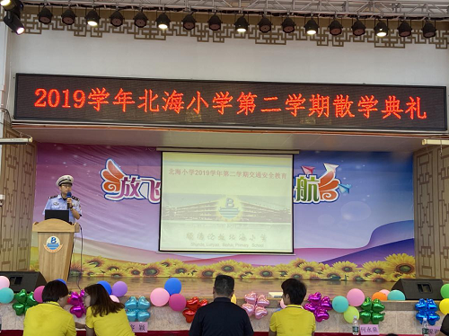散學(xué)典禮在莊嚴(yán)的國歌聲中拉開了帷幕。快樂過暑假,安全不“放假”。交通安全校長郭俊杰警官給全體師生帶來了一堂精彩的安全教育講座,包括交通安全、食品安全、用電安全、防止溺水、防疫防控安全等,希望同學(xué)們過一個(gè)安全、愉快、有意義的假期。