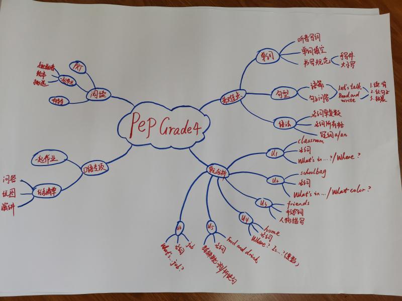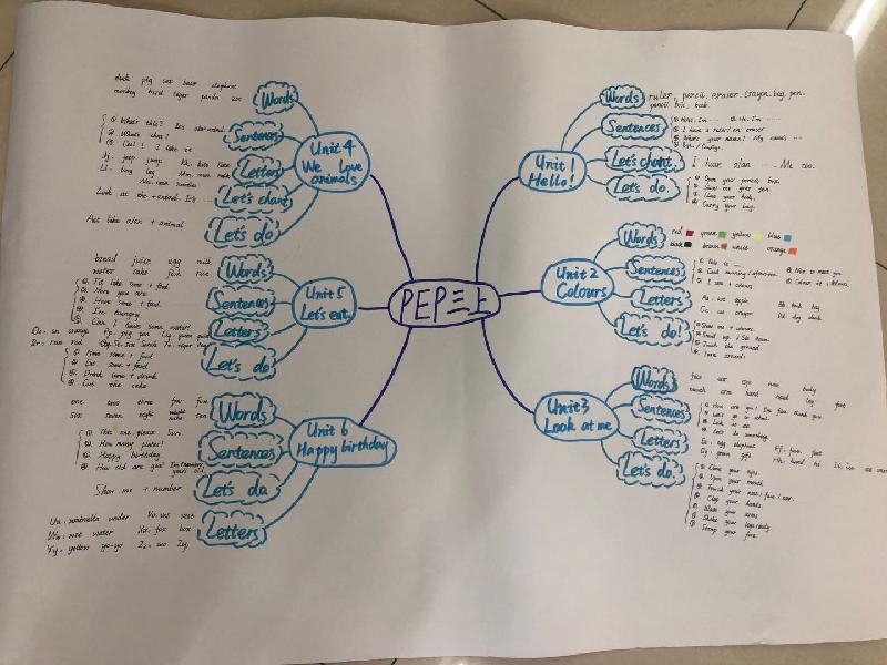 在思考和討論怎么教,如何教之前,教材分析是備課中必不可少的環節。對教材做好分析,便知道自己要教什么,上課自然有重難點。而思維導圖作為現今流行的梳理方式,早與教育相融合。今日,英語科組開展了以思維梳理教材,導圖展現分析的教研活動,以備課組為單位,用思維導圖對所在年級的英語教材進行了分析。
