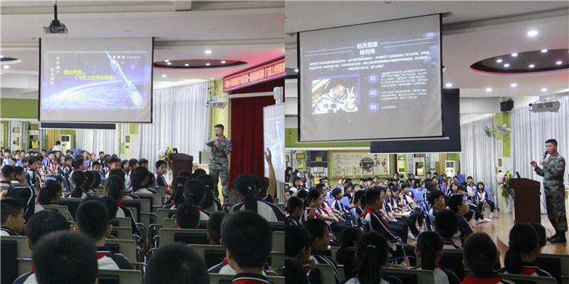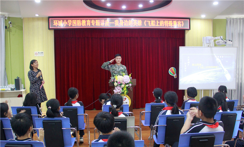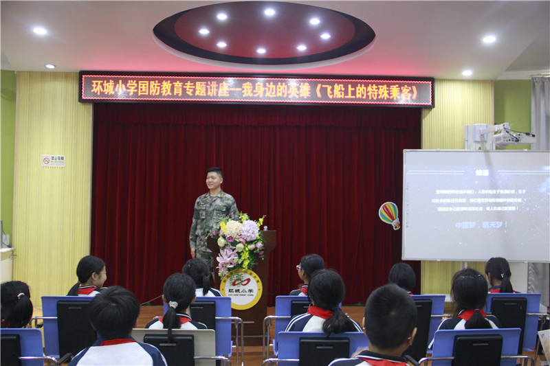劉連長以“飛船上的特殊乘客”為主題,向環小學子們分享了在空軍部隊中的所見和所感。隨后,劉連長向孩子們詳盡地介紹了我國航天事業所取得的成就,分享了楊利偉、景海鵬等宇航員為我國航天事業所做出的卓越貢獻。