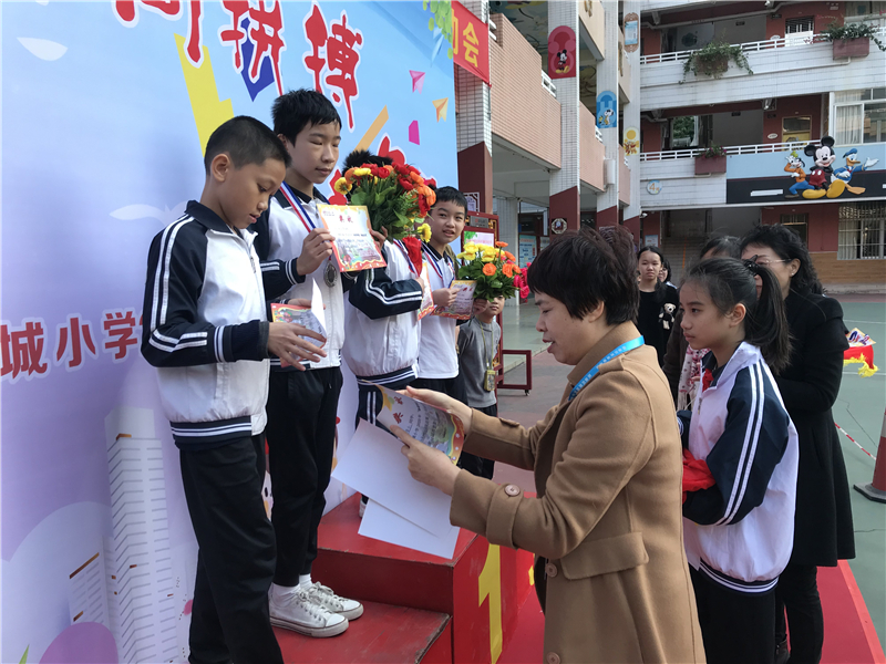 隨后,兩位責任督學在巡視校園的時候為運動會獲獎的學生進行了頒獎儀式,并與學生合影留念。