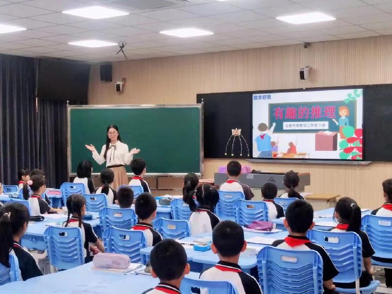 4月2日上午,黃威威老師為順德區(qū)龍江葉霖佳小學(xué)三年級(jí)的同學(xué)們上了北師大版《有趣的推理》一課。課前,黃老師用幽默的語(yǔ)言與學(xué)生互動(dòng),拉近了彼此距離,為正式上課做好鋪墊。伴隨上課鈴響,師生迅速進(jìn)入上課狀態(tài)。課中,孩子們先通過(guò)“猜禮物在哪”初步感知推理;接著在老師引領(lǐng)下,親歷“在哪個(gè)興趣小組”和“航模放在哪”兩個(gè)活動(dòng),學(xué)習(xí)到如何讀懂信息,抓住關(guān)鍵信息進(jìn)行推理,同時(shí)學(xué)會(huì)用表格法簡(jiǎn)潔地表示推理過(guò)程和結(jié)果;最后孩子們還運(yùn)用學(xué)到的知識(shí)安排好“任課表”。這節(jié)課結(jié)構(gòu)嚴(yán)謹(jǐn),教學(xué)方法靈活多變,教學(xué)語(yǔ)言豐富,老師關(guān)注學(xué)情,能有效地利用學(xué)生學(xué)習(xí)資源,引領(lǐng)學(xué)生思考,獲得知識(shí)與能力,發(fā)展了數(shù)學(xué)思維。