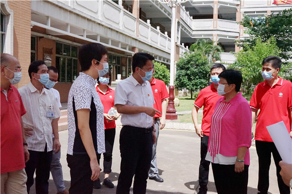 7月2日上午,順德區(qū)區(qū)委副書記、區(qū)政法委書記王勇、區(qū)教育局局長閔樂萍一行到容山中學(xué)開展高考防疫專項督查工作。容山中學(xué)校長、考點主考區(qū)淑玲及相關(guān)行政陪同領(lǐng)導(dǎo)到校園相關(guān)高考功能場室進行巡視。