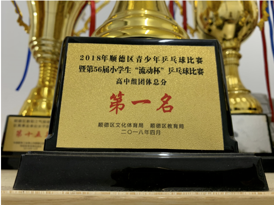 2018年度、2019年度順德區(qū)青少年乒乓球比賽暨56屆小學生“流動杯”乒乓球比賽高中組團體總分第一名;