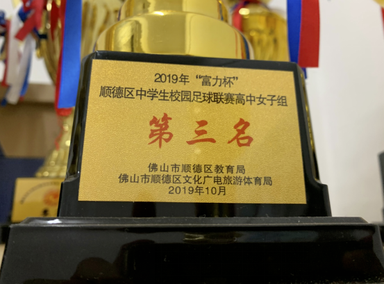 2019年順德區(qū)中學生“富力杯”校園足球聯(lián)賽高中女子組都榮獲第三名,男子組榮獲第七名;